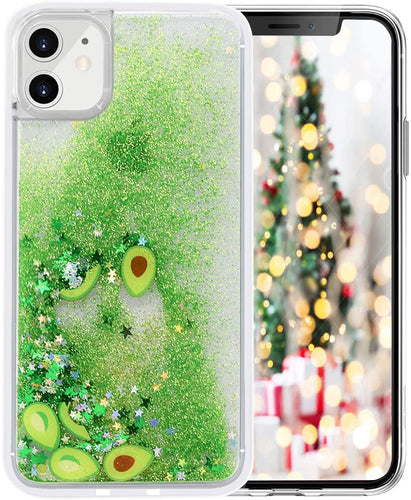 phone 11 Liquid Glitter Case Quicksands Avocado Star